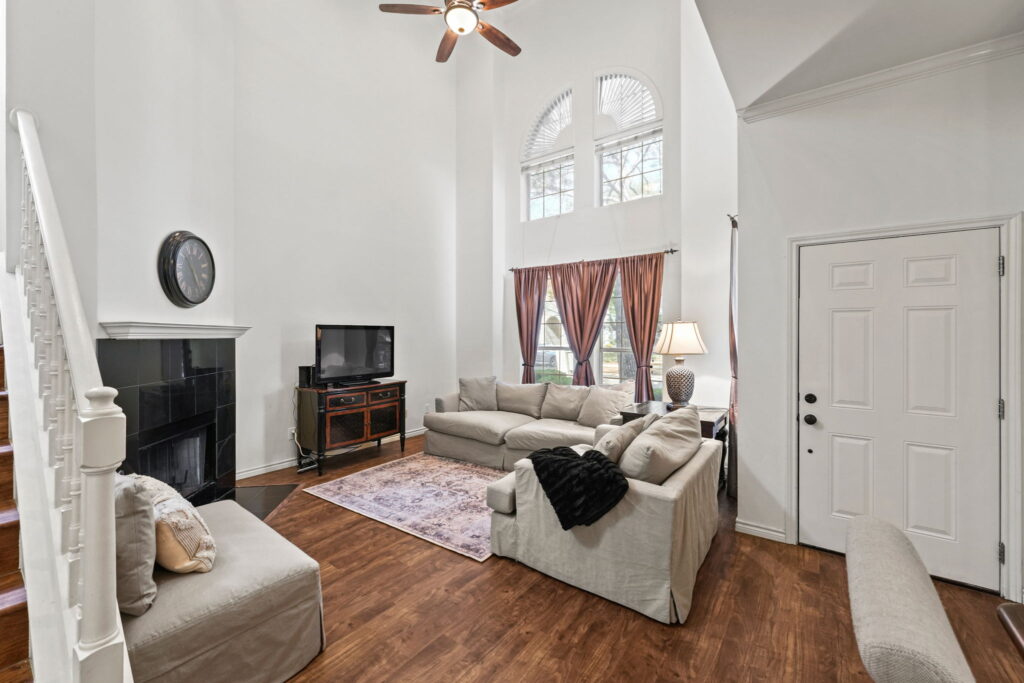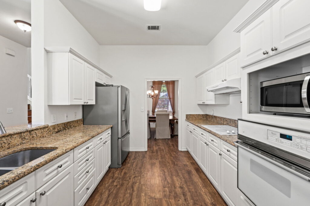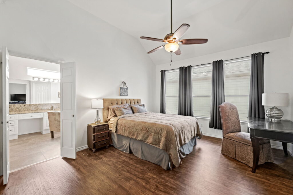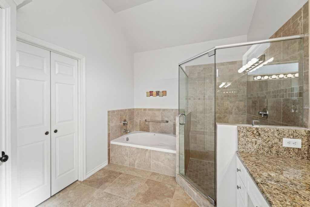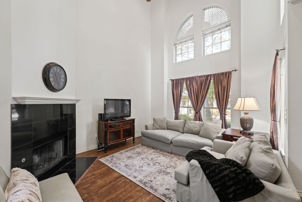 Attractive zero-lot line home with a cozy covered back patio & a private driveway to a 2-car garage located in the quiet Preston Village community. This home features tile floors and luxury vinyl planking, high ceilings and abundant natural light. The living room and formal dining room are open to the kitchen and breakfast area. The kitchen has granite countertops, a breakfast bar, and plenty of cabinet space. The backyard area features covered sitting area , large storage closet and a grassy area. Upstairs boost a second living area, 2 bedrooms and 2 full bathrooms. The roomy primary bedroom ensuite bathroom has large walk-in shower, separate tube, plenty of storage and double sinks. The HOA includes front yard maintenance. Zoned for Plano ISD!